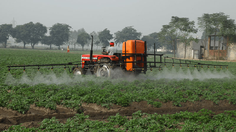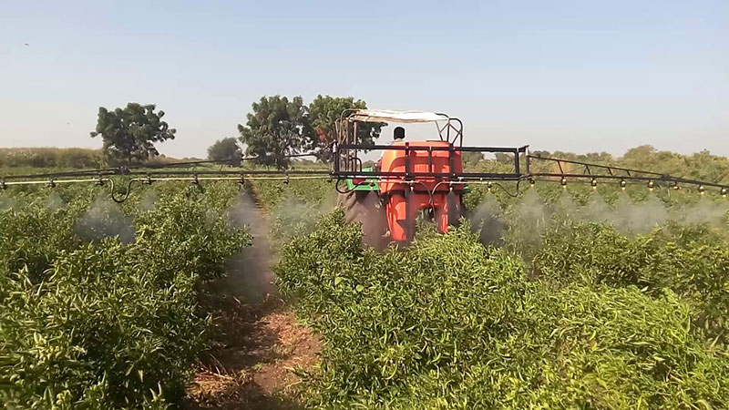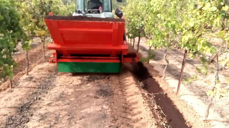 Fertilizer is applied with an electronically controlled mounted spreader. This light weight and versatile machine is ideal to suit field and